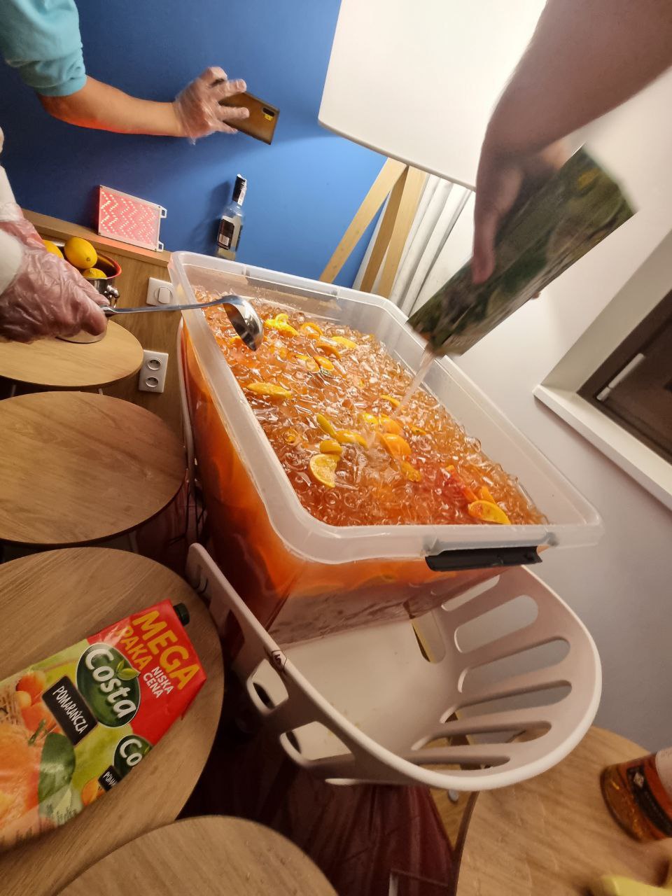We started off with the ‘Jungle Juice Party’ – an unofficial event held at Gdakon in 2022. It was an event where our association gifted free alcohol in a super interactive roomparty held in an appartment room at the convention. Attendees were tasked to fill up a 145L storage container with an alcoholic mix. After the tub was filled – attendees could enjoy the party and the concoction completely free of charge. This party was held unofficialy at Gdakon for 3 years before this event was moved to our official partners at SloFluffCon; where it remains an Official Event to this day.